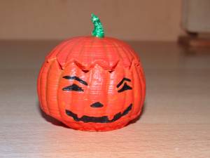 And finally the new filamentThis is the plastic which is used as a source for the printRead more had arrived, so we could print even bigger things. Halloween was around this time, so we decided to print a pumpkin. The new filamentThis is the plastic which is used as a source for the printRead more had a much better quality and looked even better, because the transparency of the first one was not looking goon on pictures. The print of the pumpking was almost perfect - except that the X axis started to shift sometimes. It could be seen on the bottom part of the result, but it was not that bad, so we painted anyway and the paint was helping as usual. ![]()