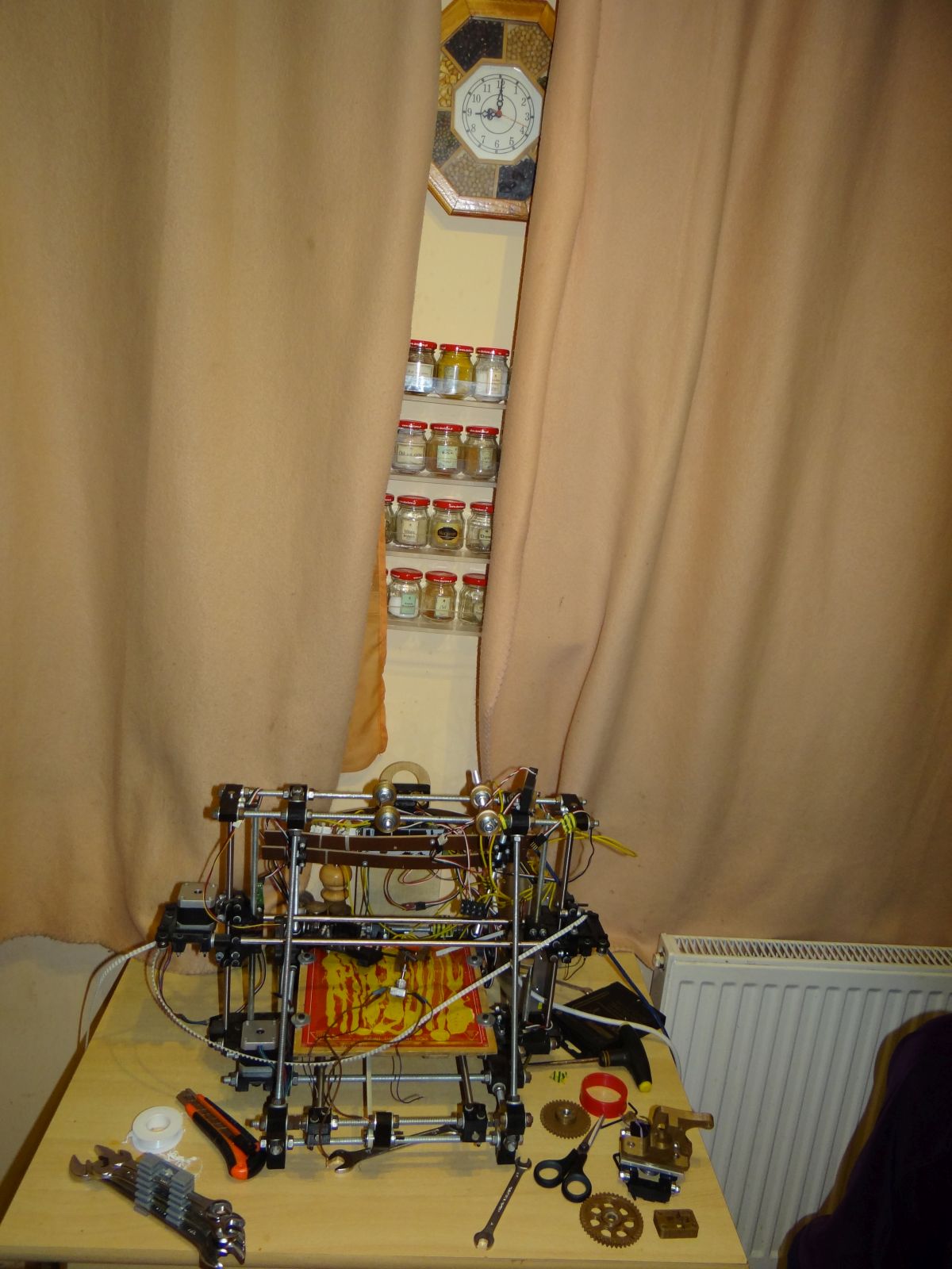 And finally we were facing an issue which we simply couldn't figure out. The filamentThis is the plastic which is used as a source for the printRead more stuck randomly during the print. We checked the gear, but that's okay. We even replaced the body of the pusher to a newer design - which we used previously, but decided the old one was better. We cleaned the barrel and the hotendThis is where the plastic actually melted. It is part of the extruder which contains the pusher and the barrel as well. again, but there was nothing there this time. And we even broke the barrel during this, but we have spare one of that too, so we simply replaced that.